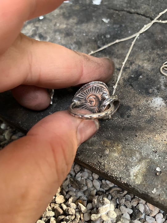 Each piece is hand forged and genuinely bespoke. I pride myself on working in an ethical and environmental studio. All my metal is 100% recycled.Most of the stones are from our travels and polished here at the farm.I hope that when my customers purchase my jewellery they can feel that it was created with respect for the earth.I am a practising Wiccan. My studio is like my temple. I feel jewellery holds its own soul and I hope that my pieces uplift and inspire the wearer.I often add powerful words or affirmations to my work. Symbols and talismans. I hope to bring powerful energy and vibrations to the wearer.Jewellery becomes a sacred personal adornment. Taking the original piece to a higher level of inspiration, self-expression and comfort