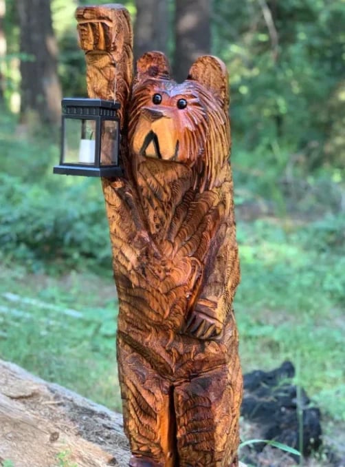 Add character to your home and put a smile on your visitors faces with a long-lasting cedar chainsaw carving.